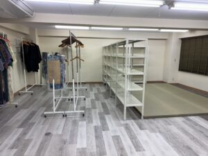 そして、畳の搬入にあわせまして、松下運送さんに中古什器を搬入していただきました。松下運送さんも三十年来のお付き合いで、お世話になっております、いろいろとお店の引越もかねて便宜を図っていただきました。