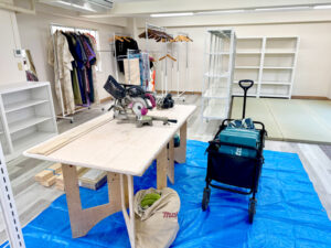 そして、お店の半分、お客様が使うところをフローリングにしました